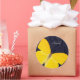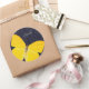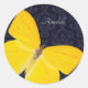 Sticker Rond Elégant Papillon jaune Noir Damas Ajouter un nom