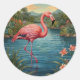 Un paradis vintage avec ce flamant rose de style rétro, élégamment niché dans un lagon tropical paisible.