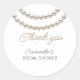 Faire-Part de Mariage Élégant Blanc Autocollant Rond Classique avec un collier de perles argentées en aquarelle. Il est très facile à personnaliser, avec les détails de vos informations personnelles.