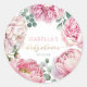 Sticker Rond Elégant Peony rose et fille F Baby shower