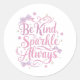 Share a message of kindness and inner light with this elegant "Be Kind, Sparkle Always" graphic. The beautiful, flowing script in shades of pink and purple, accented with delicate sparkles, is a magical reminder to be compassionate while letting your own unique light shine. It's a perfect, uplifting statement of positivity.