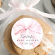 Elegant blush pink bow paper stickers perfect for baby showers.