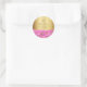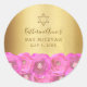 Sticker Rond Elegant Pink Rose Floral Gold Bat Mitzvah