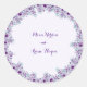Elegant purple flower Classic Round Sticker .There is a customizable calendar where you can put a heart around your wedding date with space for the couple's name & wedding location. Elegant, stylish, and chic, this card is a great way to let your friends and family know to save the date for your special day.