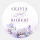 Sticker Rond Elegant Purple Flowers and Gold Wedding Seals