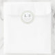 Cette élégante autocollant de mariage présente un design minimaliste avec un élément central circulaire sur fond blanc. Le motif rayé vert et blanc discret ajoute une touche de sophistication subtile, tandis que la police serif classique renforce son attrait intemporel. Parfait pour exprimer votre gratitude lors de votre événement spécial, cet autocollant combine des lignes épurées et un espace négatif pour créer un look moderne et pourtant traditionnel. Son élégance discrète en fait un choix idéal pour les occasions formelles, capturant l'ambiance de gratitude et de célébration.