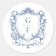 Sticker Rond Élégant Rose Bleu Monogram Crest Mariage
