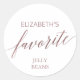 Ces élégantes calligraphies en or rose, ses autocollants et ses autocollants préférés sont parfaits pour un mariage simple. Le design rose vif est orné d'un autocollant minimaliste décoré avec une typographie romantique et fantaisiste de feuille d'or rose. Personnalisez le étiquette avec le nom de la mariée ou du marié et leur bonbon ou traitement préféré. Achetez pour le favori de la mariée et le favori du marié et donnez les friandises comme votre faveur de mariage. Remarque : Ce design ne présente pas de véritable feuille d'or rose. C'est un graphisme de haute qualité fait pour ressembler à du papier doré rose.