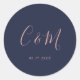 Sticker Rond Élégant Rose Monogram Mariage de marine