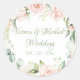 Sticker Rond Élégant rose & Pastel Vert Mariage floral