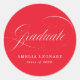 Autocollants de graduation personnalisée avec "Graduate" en élégant script de calligraphie blanc avec un arrière - plan rouge ou votre couleur personnalisée choisie. Personnalisez les autocollants de graduation en ajoutant le nom et l'année de graduation du diplômé. Les autocollants personnalisés sont parfaits pour les sceaux d'enveloppe de graduation, les faveurs de la fête de graduation, et plus encore.