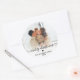 Élégant Sticker Whimsical "Joyeux Noël" Script Calligraphie Famille Photo Vacances Round Sticker. Modèle photo, nom de famille, année et un petit motif de coeur mignon. Idéal pour les enveloppes d'accessoires de messagerie et les autocollants-cadeaux.