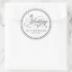 Un autocollant de mariage magnifiquement élégant avec des accents de texte de script de calligraphie avec une bordure dans la couleur de votre choix autour de votre texte. Montré ici avec une bordure gris argenté, vous pouvez customiser cette couleur pour correspondre à votre jeu de couleurs mariage en sélectionnant une autre couleur arrière - plan. Le style simple et soigné convient parfaitement aux mariages en toutes saisons. Des invitations de mariage, des cartes RSVP et d'autres produits mariages sont disponibles dans cette conception.
