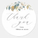 Élégant Sticker à Mariage blanc floral Merci classique rond