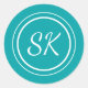 Sticker Rond Élégant Script Turquoise Professionnel Monogramme