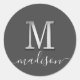 Sticker Rond Élégant Silver Personnalisé Monogramme M Nom