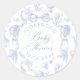 Élégant Toile de Jouy Safari Bleu Baby shower Autocollant rond classique