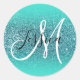 Sticker Rond Elégant Turquoise Ombre Faux Parties scintillant T
