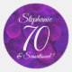 Élégant Purple 70 et Sensational Birthday Favor Classic Round Sticker spécial unique élégant violet fête d'anniversaire en faveur autocollants spécialement conçus pour vos amis qui ont 70 ans et sont sensationnels! Personnalisez cette fête d'anniversaire en faveur autocollant avec leur nom. Appliquez cet autocollant aux faveurs d'anniversaire, enveloppes pour invitations, notes de remerciement ou tout ce que vous créez pour ajouter vos touches de finition spéciales pour la fête. Planifiez votre fête avec plus de fournitures de fête d'anniversaire de notre magasin! Vos amis ou votre famille aimeront une soirée d'anniversaire élégante à thème violet!