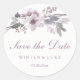 Sticker Rond Élégant violet floral d'hiver Enregistrer la date