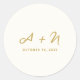 Sticker rond classique de mariage simple mais élégant avec un Monogramme en or de Whimsical. Cet autocollant rond peut être utilisé pour les faveurs événementielles ou les enveloppes.