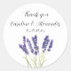 Belle, élégante aquarelle lavande fleurs Mariage autocollants. Unique, peint à la main les herbes de lavande violet classiques collants ronds. Plantes botaniques. Art de la nature. Personnalisez avec vos Noms et la date du Mariage.