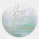 Awash Elegant Watercolor Texture in Ocean colorway of Aqua Turquoise Blue Green, and faux Gold Foil à la main accents. Mariage élégant Enregistrer la date Favoriser les autocollants avec jolie Calligraphie Signature Script police! ~ Regardez ma boutique pour voir l'ensemble de la suite mariage pour ce design!
