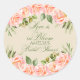 Élégant Rose Aquarelle Fête des mariées Florale Classic Round Sticker.
