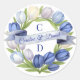 Sticker Rond Elégante aquarelle Tulipe Mariage de couronne bleu