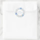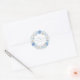 Élégants autocollants de baby shower présentent une couronne florale aquarelle avec de belles fleurs dans différentes nuances de bleu ainsi qu'un script de calligraphie délicat.