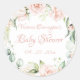 Sticker Rond Élégante Baby Shower Florale Rose