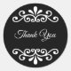 Sticker Rond Élégante calligraphie Merci en noir et blanc