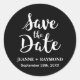 Voici notre "Autocollant Rond Classique Mariage Noir Calligraphie Élégante Enregistrer la Date". Cet autocollant allie calligraphie noire classique et design rond intemporel, parfait pour annoncer votre jour spécial avec élégance. Idéal pour sceller des enveloppes ou embellir des cartes "save the date", chaque autocollant peut être personnalisé avec vos noms et date de mariage. Son apparence sophistiquée et sa touche personnalisable le rendent spécial, offrant aux couples une façon élégante de donner le ton pour leurs célébrations de mariage avec une touche de charme raffiné.