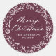 Sceller les cadeaux de Noël, les sacs de faveur, et les enveloppes de vacances avec des autocollants festifs Joyeux Noël. Les autocollants des fêtes présentent "Joyeux Noël" dans un script de calligraphie blanc encerclé par une couronne de flocons de neige et de branches de pin sur un arrière - plan mauve de baies. Personnalisez les autocollants en ajoutant votre nom de famille ou votre texte personnalisé.