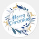 Ce design présente la couronne de Noël de rennes dorés, feuilles, fleurs, branches et baies dans les tons bleus et gris tendance avec "Joyeux Noël" dans un script bleu en caractères lettrés à la main.