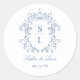 Sticker Rond Élégante crête baroque Monogramme Mariage bleu