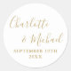 Avec des noms de style signature et une date spéciale, cet autocollant élégant peut être personnalisé avec vos noms dans une typographie dorée chic sur fond blanc. Vous pouvez personnaliser l'arrière-plan avec la couleur de votre thème de mariage préféré. Conçu par Thisisnotme©