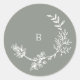 Sticker Rond Élégante enveloppe Sage vert Floral Monogramme Wre