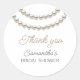Autocollant Rond Classique Élégant de Fête de Mariage Blanc avec un collier de perles argentées en aquarelle. Il est très facile à personnaliser, avec les détails de vos informations personnelles.
