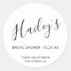 Sobre Fête des mariées noir et blanc Favor Stickers avec le nom du futur marié dans un élégant script manuscrit. Ci-dessous, le titre et la date de l'événement ainsi que le message, "Merci tellement pour nous rejoindre" dans une police sans serif. Le design minimaliste est agrémenté d'une touche romantique grâce au lettrage à la main chic.