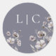 Cet autocollant rond élégant et sucré avec une fleur d'aquarelle délicate simple est conçu pour le couple moderne à la recherche d'élégance et de simplicité. Un monogramme en texte blanc sur arrière - plan foncé fait ce contraste autocollant sur vos enveloppes blanches. L'illustration florale botanique délicate de l'aquarelle en gris sombre et violet poussiéreux lui donne un design romantique moderne. La fleur peut être facilement effacée si vous désirez un design encore plus simple. Cliquez sur l'outil de conception ouverte pour effectuer des modifications personnalisées.