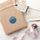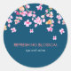 Chic élégant joli autocollant rond classique en fleur rose avec joli fleur de cerisier rose sur un arrière - plan bleu avec un texte rose et blanc pour vous de personnaliser avec votre nom ou votre message. Idéal pour la marque, l'emballage ou comme autocollants de faveur à des fins promotionnelles.