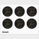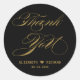 Élégant Noir Calligraphie Or Merci Mariage Faveur Classic Sticker Rond. Elégante calligraphie blanche et violette merci les stickers sont parfaits pour un mariage Noir et Or simple. papeterie. Personnalisez les étiquettes autocollants avec vos noms et la date. Ces autocollants peuvent être utilisés pour une réception de mariage, une douche nuptiale, ou tout autre événement organisé par le couple!