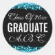 Sticker Rond Élégante Graduation Turquoise Lumières & Étincelle