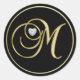 Sticker Rond Élégante lettre M de monogramme d'or noir