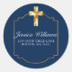 Sticker Rond Elégante Marine Croix Bleue Or 1ère communion