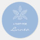 Autocollants simplistes avec une fleur d'orchidée élégante sur un arrière - plan bleu poudre simple. Personnalisez ce design féminin minimal en ajoutant le nom de la fille du parti.