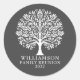 Élégant Sticker Rond Reunion Famille Charbon Moderne. Design illustré en gris et blanc fusain sophistiqué. Arbre décoratif blanc et élégant sur le blanc sur le charbon de bois et le texte sur le blanc. Tous les textes, polices et couleurs sont personnalisables. Nous vous invitations à visiter notre magasin Zazzle, Austen & Grace, pour des produits assortis et plus encore. Veuillez nous contacter si vous avez besoin d'aide.