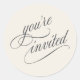 Ajoutez une touche spéciale à vos invitations ou à votre correspondance avec cet autocollant "vous êtes invité" avec un joli visage de type calligraphie. Montré ici avec un arrière - plan beige neutre, vous pouvez changer la couleur arrière - plan pour correspondre à votre thème d'événement en choisissant "personnaliser" et en sélectionnant une couleur arrière - plan différente.