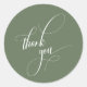 Sticker Rond Élégante Typographie Script Merci Olive Green